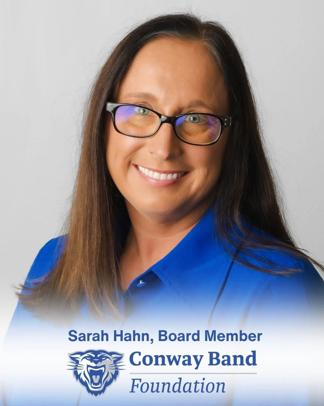 Sarah Hahn is a Conway native. She is a Conway High School alumni of the graduating class of 1998 (go Wampus Cats!). Sarah played clarinet from 6-9th grades, eventually playing the contrabass clarinet in 9th grade concert band at Conway Junior High school. She made the difficult decision to quit band and focus on cheerleading in high school, where she served as Captain of the Conway High School Varsity cheerleading squad her senior year. The Conway Bands have always held a special place in Sarah’s heart, though, and Sarah can often be heard saying the band is what carries the games and makes them so exciting!